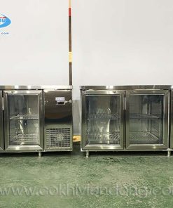 - Cửa kính của tủ làm mát công nghiệp được thiết kế 2 lớp và hút chân không ở giữa để tăng độ dày và giữ nhiệt tốt hơn. Chất liệu kính có độ xuyên sáng cao, tích hợp hệ thống đèn LED chiếu sáng, tăng khả năng quan sát các loại thực phẩm bảo quản trong tủ. Ngoài ra, thiết bị này còn được trang bị thêm chế độ sấy kính để xử lý vấn đề hơi nước bám trên cửa tủ.