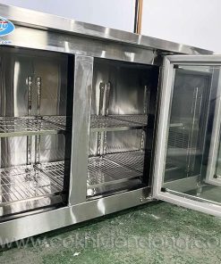 Bàn mát inox công nghiệp 3 cánh kính có khả năng bảo quản được rất nhiều loại thực phẩm khác nhau do dải nhiệt trải dài từ 0 – 10ºC. Không chỉ là các loại thực phẩm tươi sống, các loại rau, củ, quả mà bàn lạnh công nghiệp còn có thể bảo quản được những thực phẩm đã được sơ chế (các loại thức ăn đã được nấu chín). Ngoài ra, sản phẩm này còn là nơi trưng bày các loại đồ uống như rượu vang, champagne, bia, nước ngọt, bánh,…